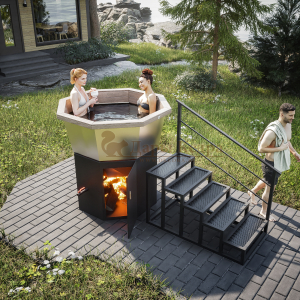 Банный чан из нержавеющей стали Ø-1750 на подставке с ветрозащитой и печью СТ3