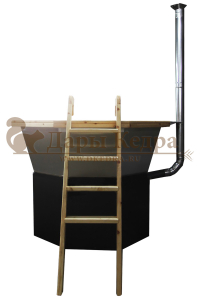 Банный чан с ветрозащитой изготовлен из пищевой стали. Представляет собой большую ёмкость в виде чаши, при нагревании которой можно париться на свежем воздухе. Банный чан установлен на металлическую закрытую подставку, которая служит защитой от ветра и печью одновременно. В комплект такой модели входит дымоход 2 метра. Чан оборудован кедровым бортом, скамейками, подспинниками, трапом для ног и приставной лестницей.