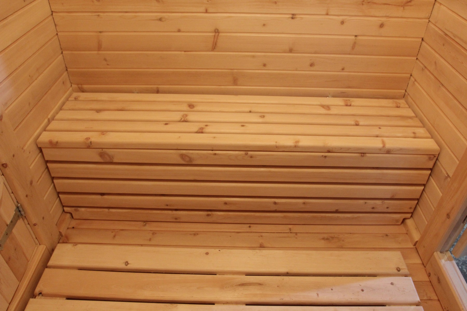 Обращаем Ваше внимание, что в стандартную комплектацию бани входят полки открытого типа в парной с обеих сторон. Дополнительно можно заказать полок закрытого типа или лавку!