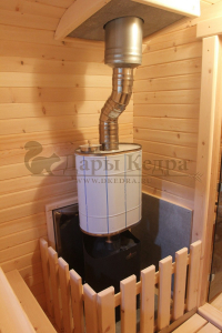 Навес из кедра - это защита печи от осадков внешней среды. Рекомендуется при установке печи с внешней загрузкой.