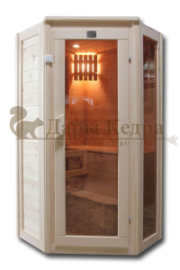 Финская сауна с электрокаменкой представляет собой компактную парную кабину, изготовленную из целебной древесины сибирского кедра. Финская