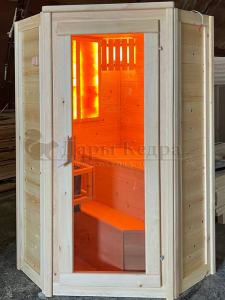 Одноместная угловая финская сауна кабина из кедра с электрокаменкой