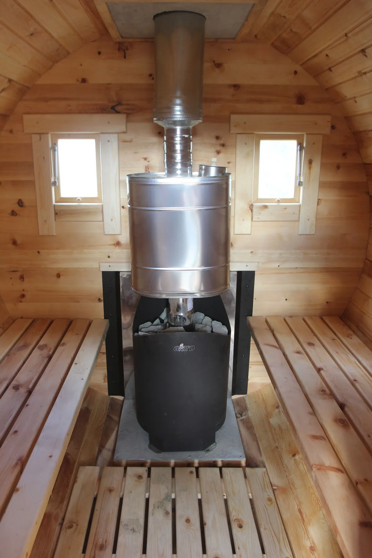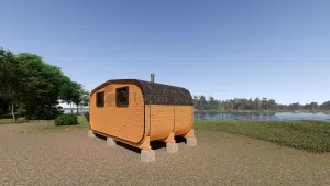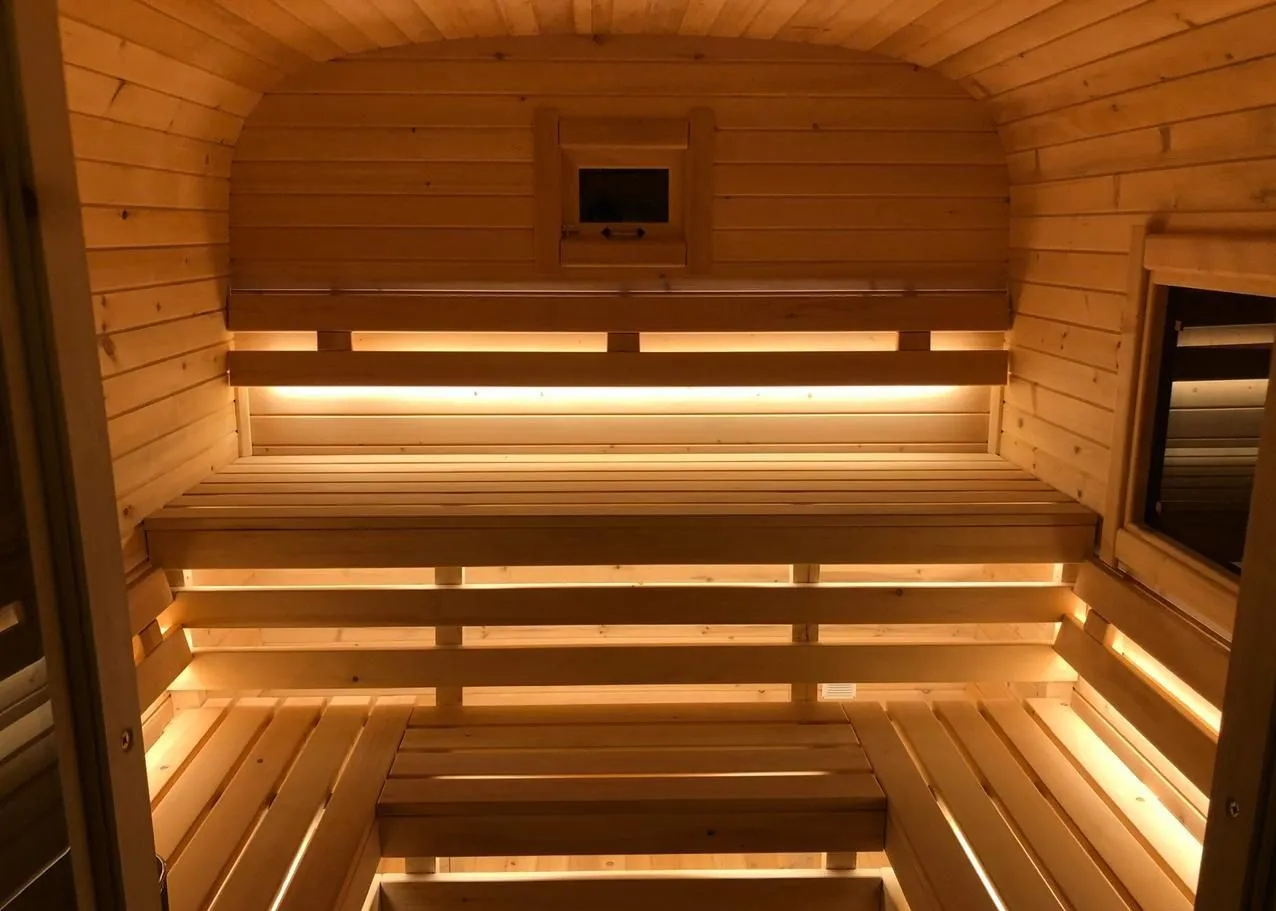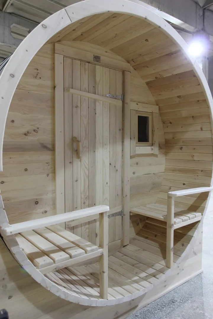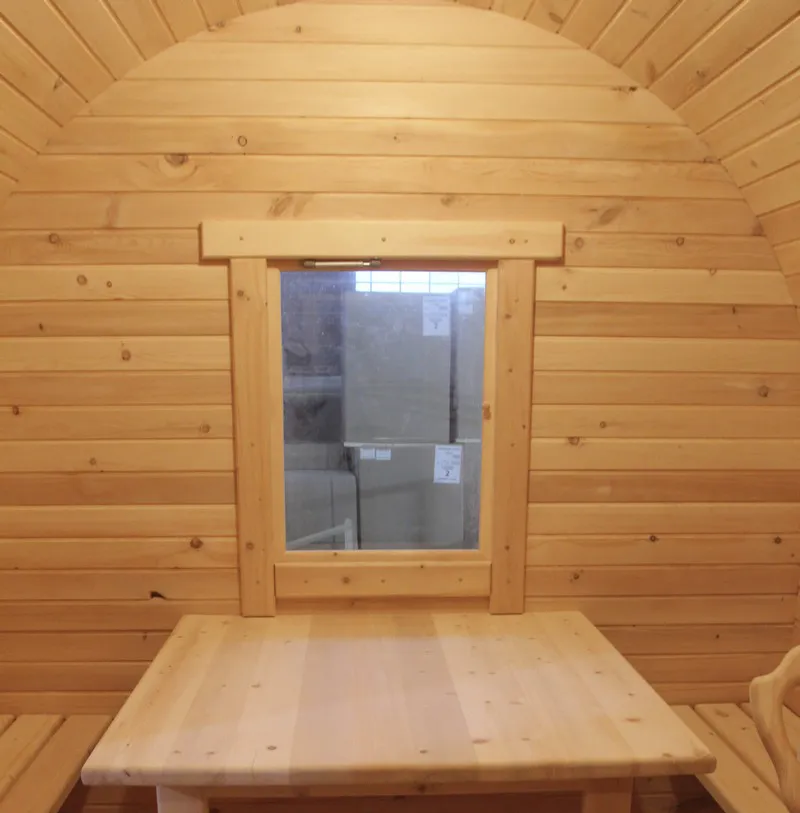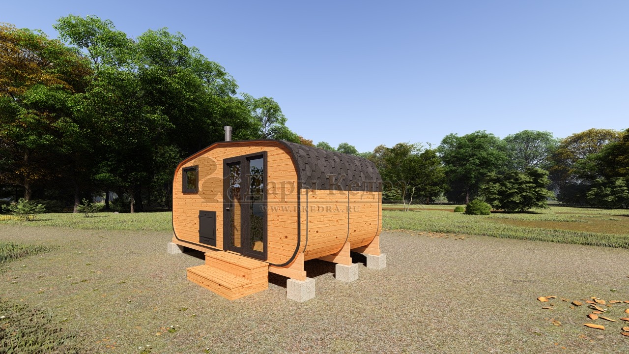 Овальная-Окта баня-бочка из кедра просторная и вместительная. Имеет два отделения: раздевалку, которую можно использовать как комнату отдыха, и парилку. Для удобства пользования раздевалка оснащена лавочкой, полкой и вешалкой из кедра. В парильном отделении располагается печь и двухуровневый открытый полок. Для установки такой модели не требуется полноценный фундамент, поэтому при необходимости ее можно перенести на другое место. Так же баню-бочку можно укомплектовать верандой со скамейками, козырьком и печью с внешней загрузкой, благодаря которой весь мусор после топки останется на улице.