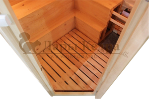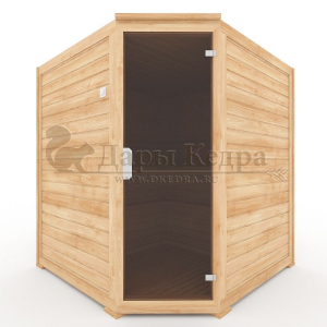 Это специально оборудованная деревянная кабина для сухого и влажного парения. Электропечь нагревает пространство внутри и позволяет сбрызгивать камни водой, слегка увлажняя воздух. Такая процедура позволяет избежать перегрева. Двойные стенки кабины с теплоизоляционным материалом удерживают тепло. Установка сауны в угол позволяет рационально использовать пространство помещения. Финская сауна с электропечью подойдет, как для домашнего использования, так и для коммерции. Доставляется в разборном виде щитами, собирается по инструкции с помощью шуруповёрта.